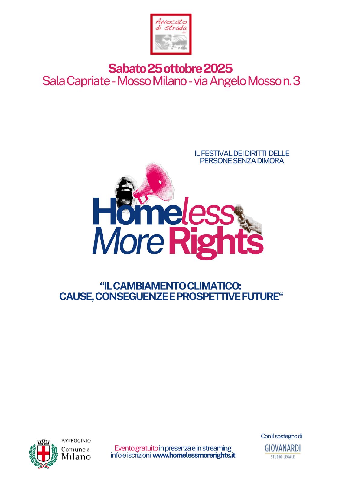 L’evento è gratuito e potrà essere seguito in presenza o in streaming su www.homelessmorerights.it.